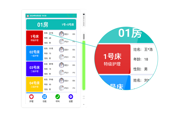 房號及床號顯示 一目了然 護工查房更方便