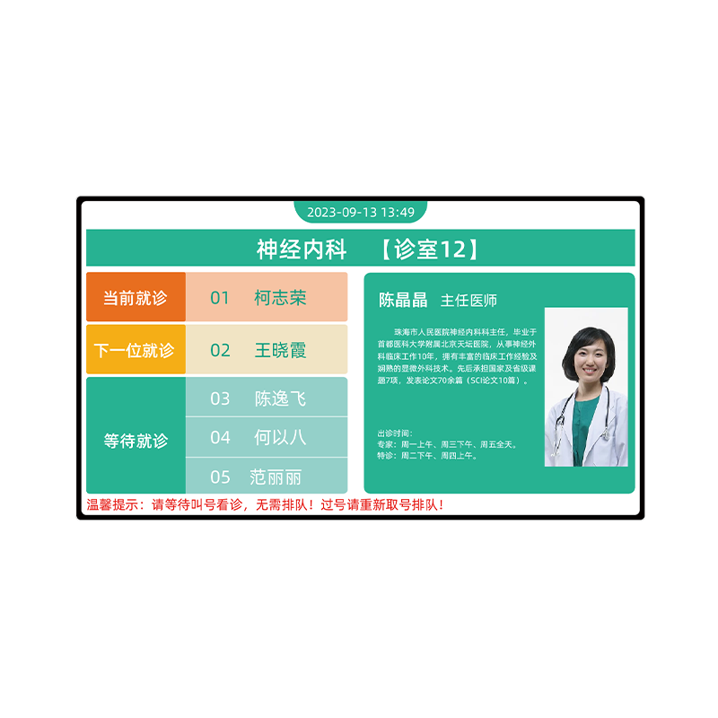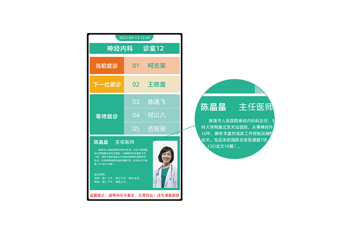 顯示醫(yī)生信息、科室信息、診室號(hào)等